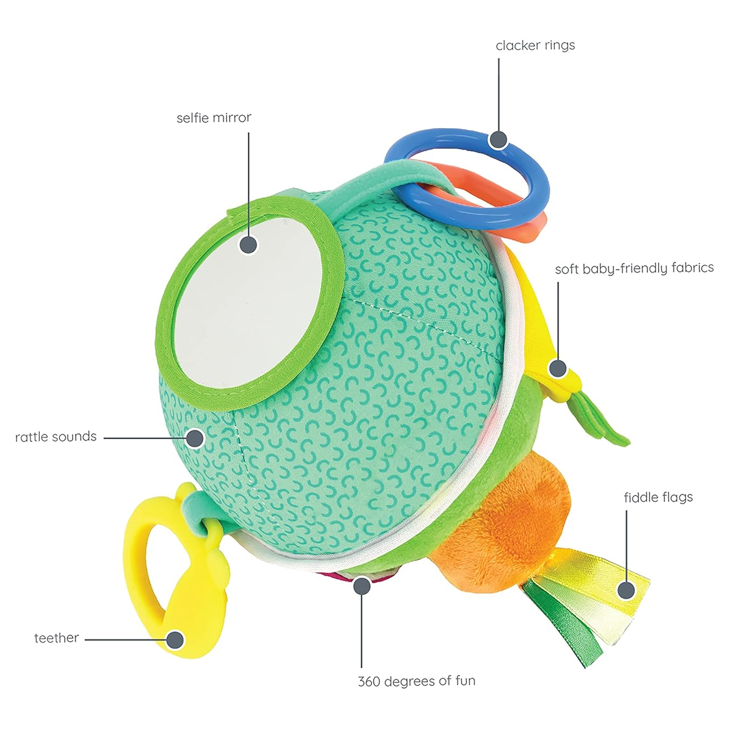 Give the gift of discovery to a baby in need with this colorful, soft sensory ball designed for endless play. Featuring 9 skill-building activities like peeling fruit, clacking rings, and rattle sounds, it encourages fine and gross motor development while sparking curiosity. Easy to grip for tiny hands, this ball is perfect for tummy time, sit-and-play, or on-the-go fun. Includes a BPA-free teether to soothe gums and a selfie mirror for early self-awareness, making it both playful and practical. Share the joy of learning this holiday season with a gift that combines comfort, creativity, and developmental growth.