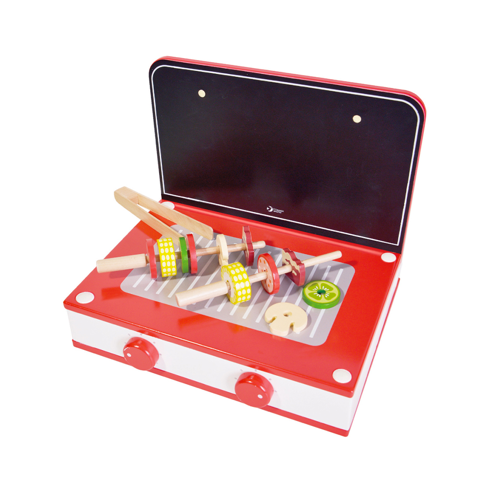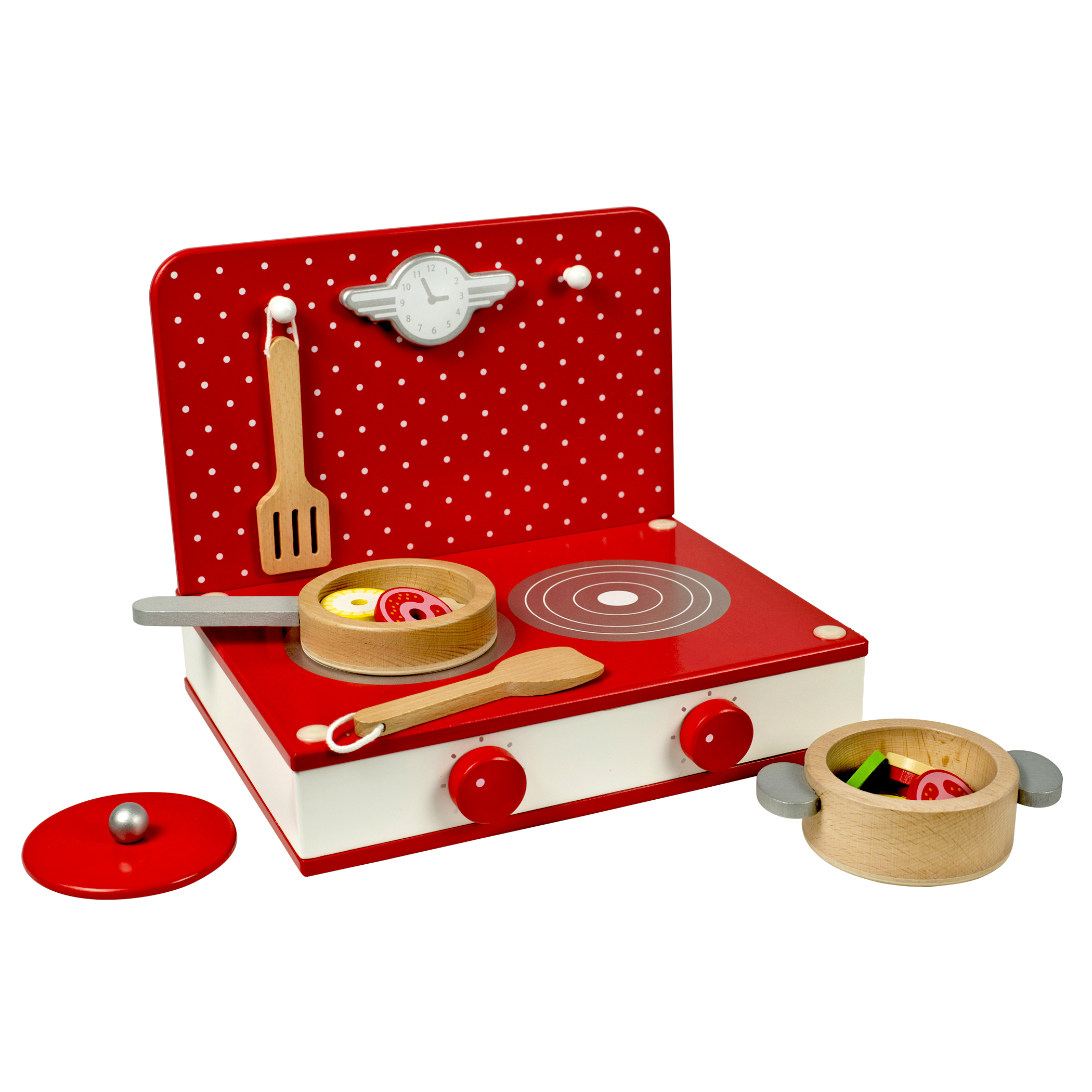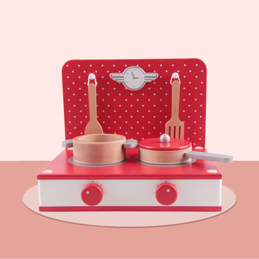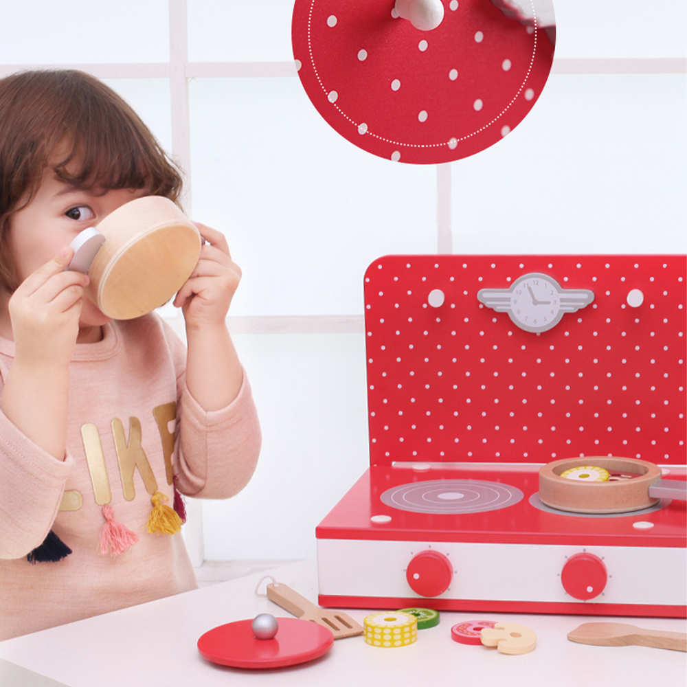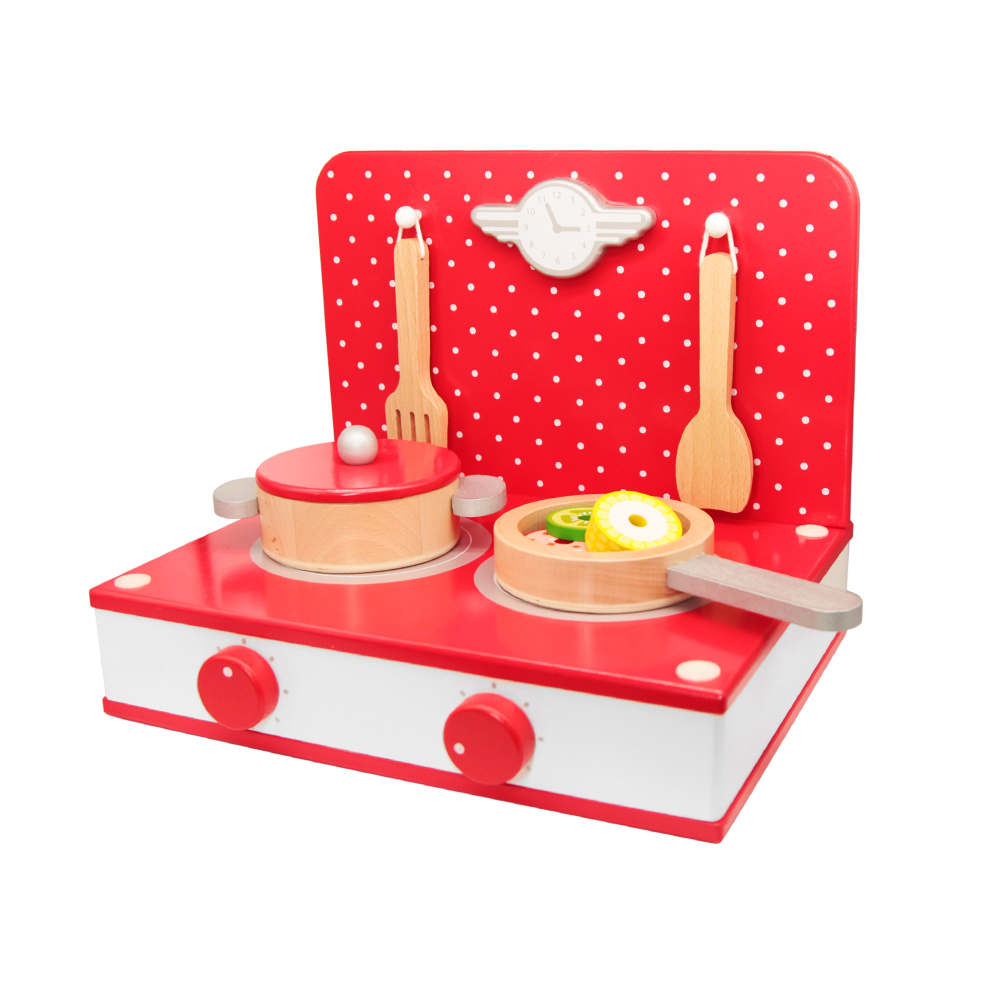 Classic Toy Red Wood Retro Tabletop Kitchen Playset